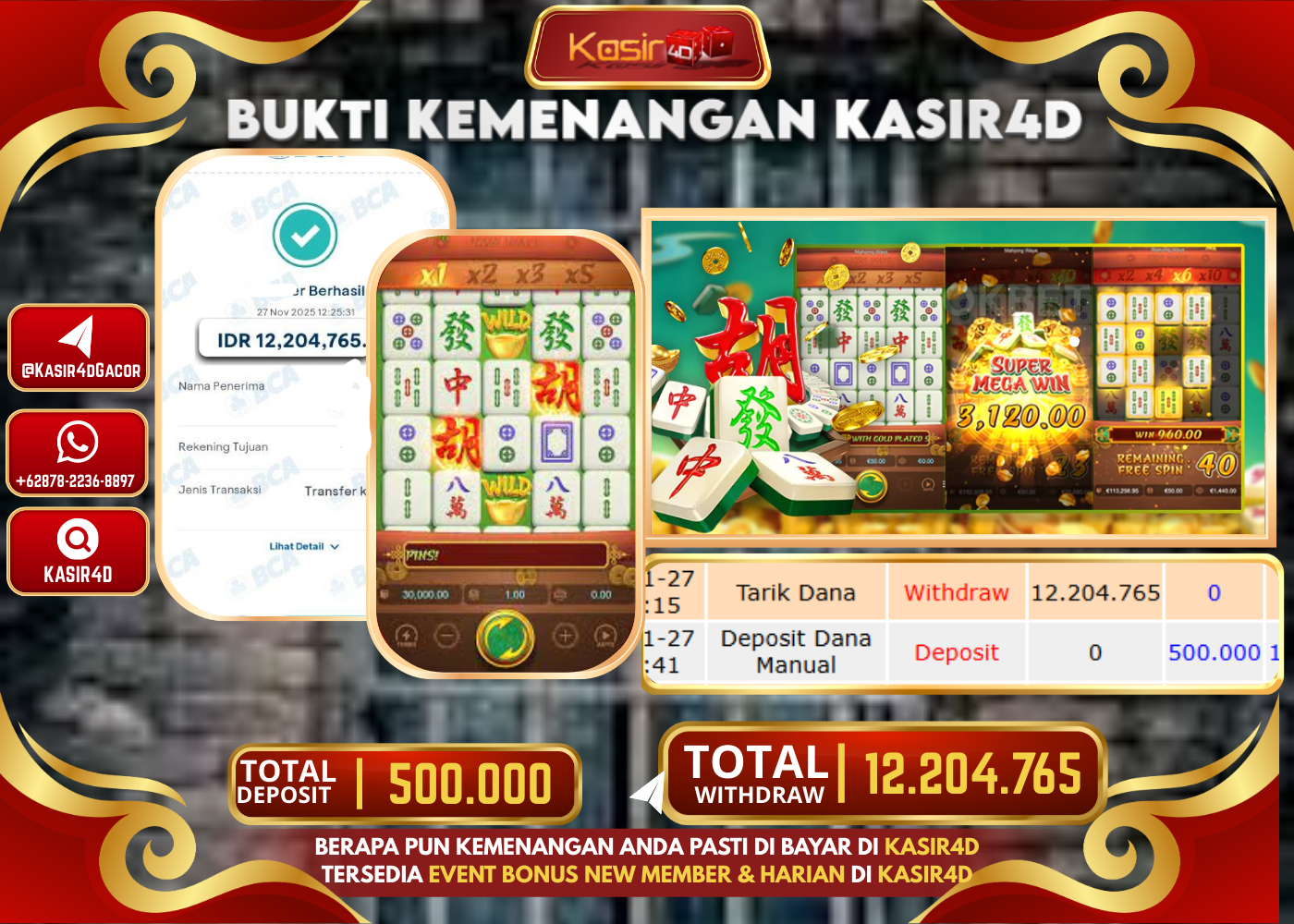 KASIR4D,Selamat Kepada User Id : y***25 Atas Withdraw Hari iniTgl 27 November 2025 Rp.12.204.765 Di Game PG SOFT MAHJONG WAYS INFORMASI LENGKAP TERKAIT…
