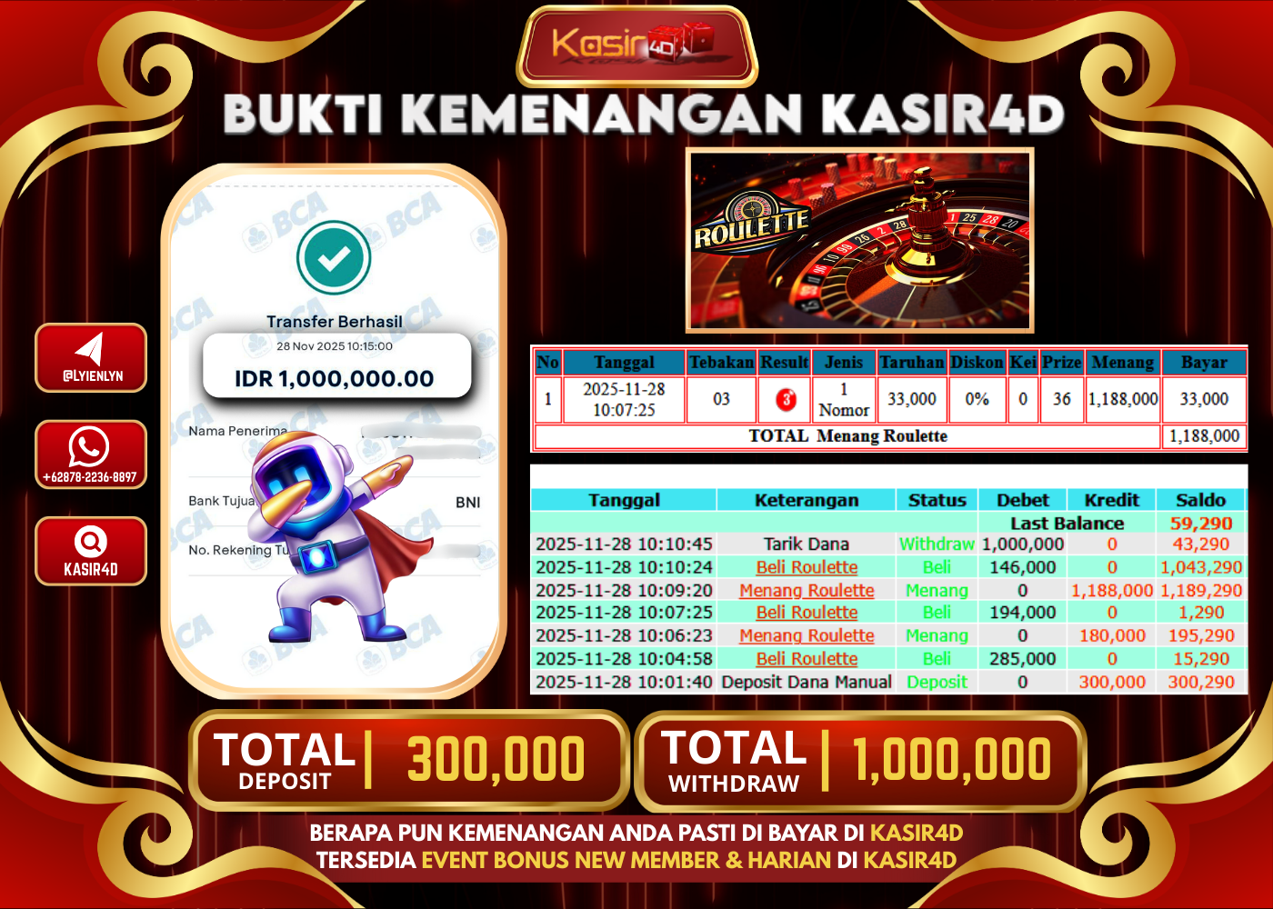 KASIR4D, Selamat Kepada User Id : HE ***** AT30 Atas Withdraw Hari ini Tgl 28 November2025Rp. 1.000.000 Di Game LIVE GAME…