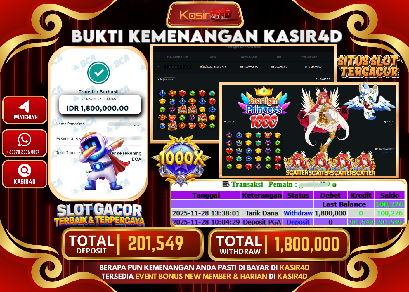 KASIR4D,Selamat Kepada User Id : l***22 Atas Withdraw Hari iniTgl 27 November 2025 Rp.16.000.000 Di Game Pragmatic Play Starlight Princess 1000 INFORMASI LENGKAP…