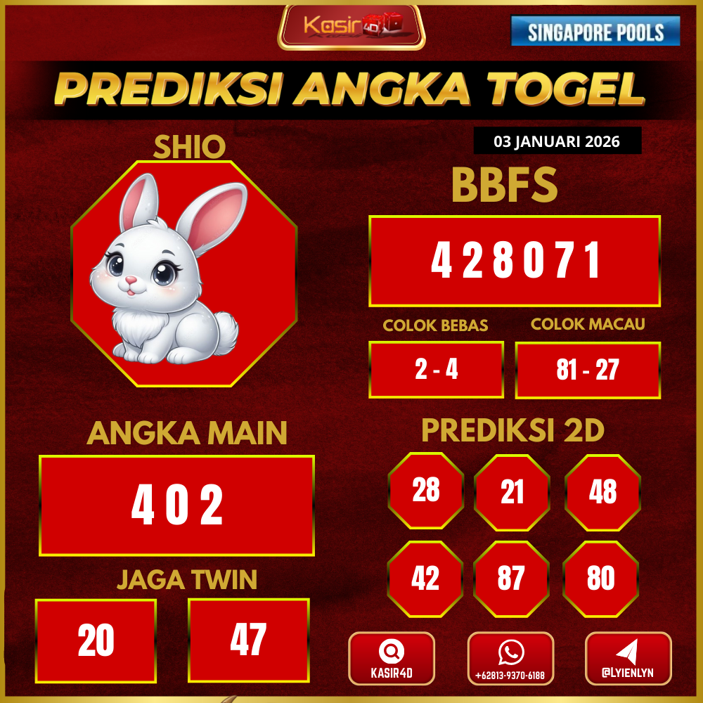 Prediksi Togel Singapore 03 Januari 2026 Kasir4d hadir untuk memberikan panduan lengkap angka jitu hari ini. Pertama-tama, Anda akan menemukan…