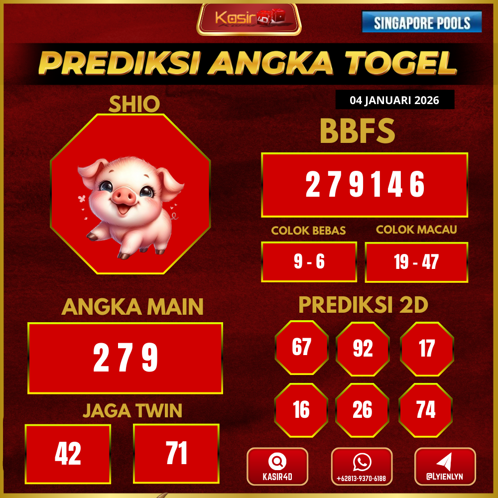 Prediksi Togel Singapore 05 Januari 2026 Kasir4d hadir untuk memberikan panduan lengkap angka jitu hari ini. Pertama-tama, Anda akan menemukan…