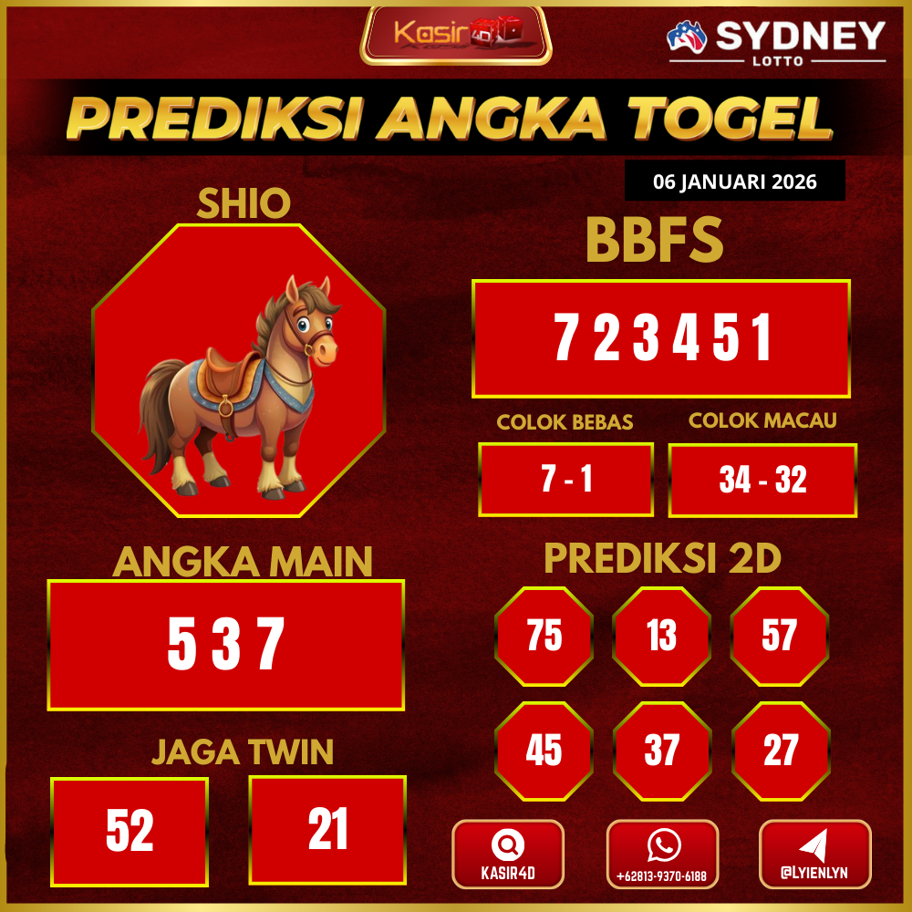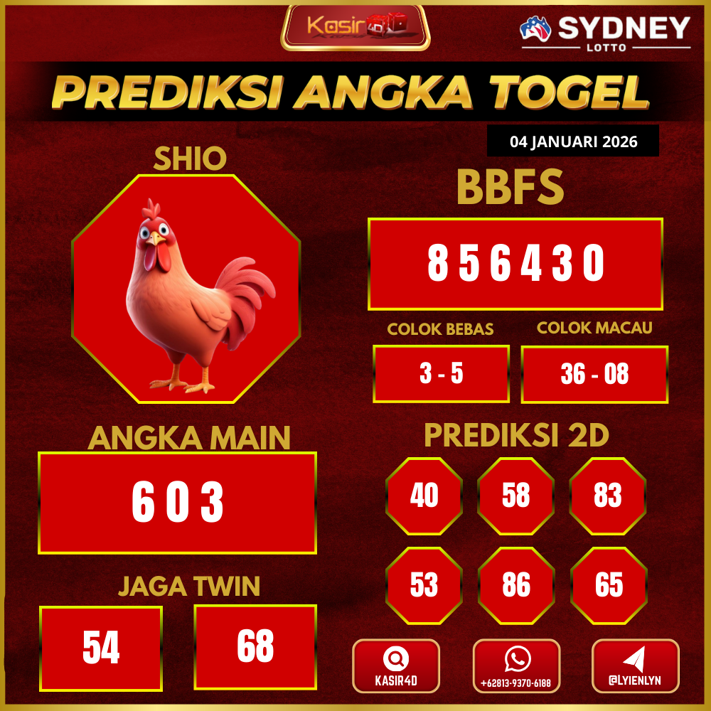 Prediksi Togel Sydney 06 Januari 2026Kasir4d hadir untuk memberikan panduan lengkap angka jitu hari ini. Pertama-tama, Anda akan menemukan data…
