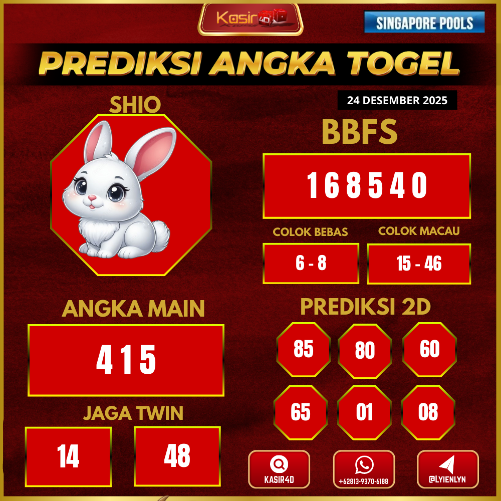 Prediksi Togel Singapore 24 Desember 2025 Kasir4d hadir untuk memberikan panduan lengkap angka jitu hari ini. Pertama-tama, Anda akan menemukan…