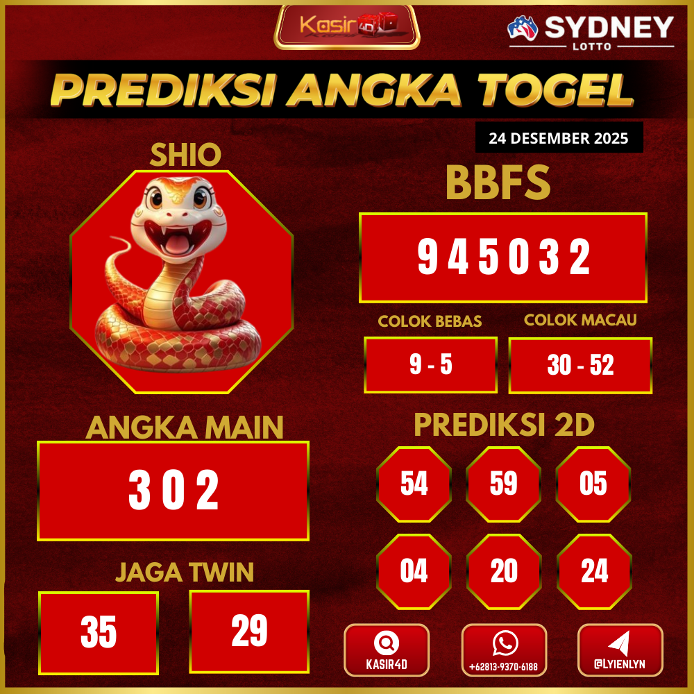 Prediksi Togel Sydney 24 Desember 2025Kasir4d hadir untuk memberikan panduan lengkap angka jitu hari ini. Pertama-tama, Anda akan menemukan data…