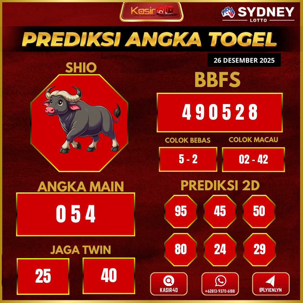 Prediksi Togel Sydney 26 Desember 2025Kasir4d hadir untuk memberikan panduan lengkap angka jitu hari ini. Pertama-tama, Anda akan menemukan data…