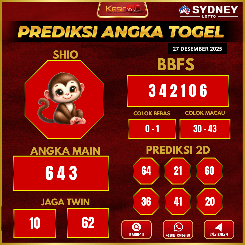 Prediksi Togel Sydney 27 Desember 2025Kasir4d hadir untuk memberikan panduan lengkap angka jitu hari ini. Pertama-tama, Anda akan menemukan data…