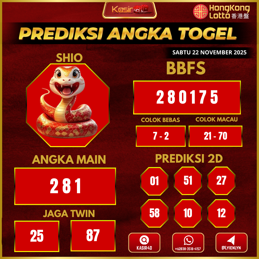 Prediksi Togel Hongkong 22 November 2025 Kasir4d hadir untuk memberikan panduan lengkap angka jitu hari ini. Pertama-tama, Anda akan menemukan…