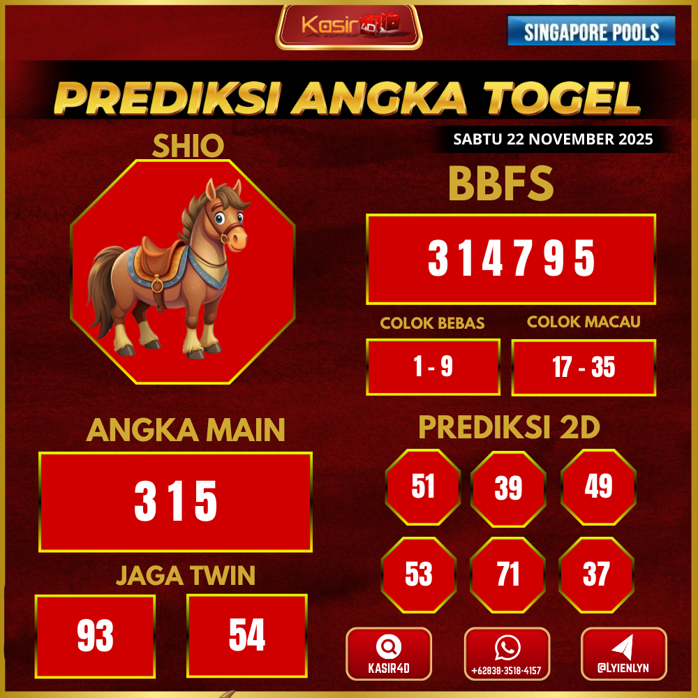 Prediksi Togel Singapore 22 November 2025 Kasir4d hadir untuk memberikan panduan lengkap angka jitu hari ini. Pertama-tama, Anda akan menemukan…