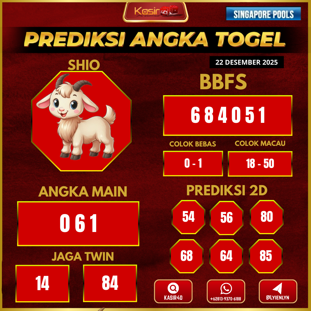Prediksi Togel Singapore 22 Desember 2025 Kasir4d hadir untuk memberikan panduan lengkap angka jitu hari ini. Pertama-tama, Anda akan menemukan…