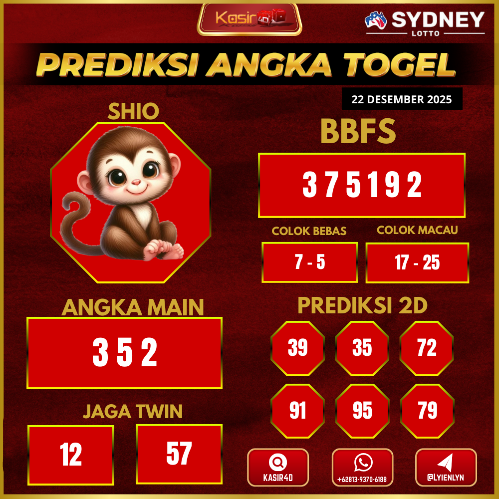 Prediksi Togel Sydney 22 Desember 2025Kasir4d hadir untuk memberikan panduan lengkap angka jitu hari ini. Pertama-tama, Anda akan menemukan data…