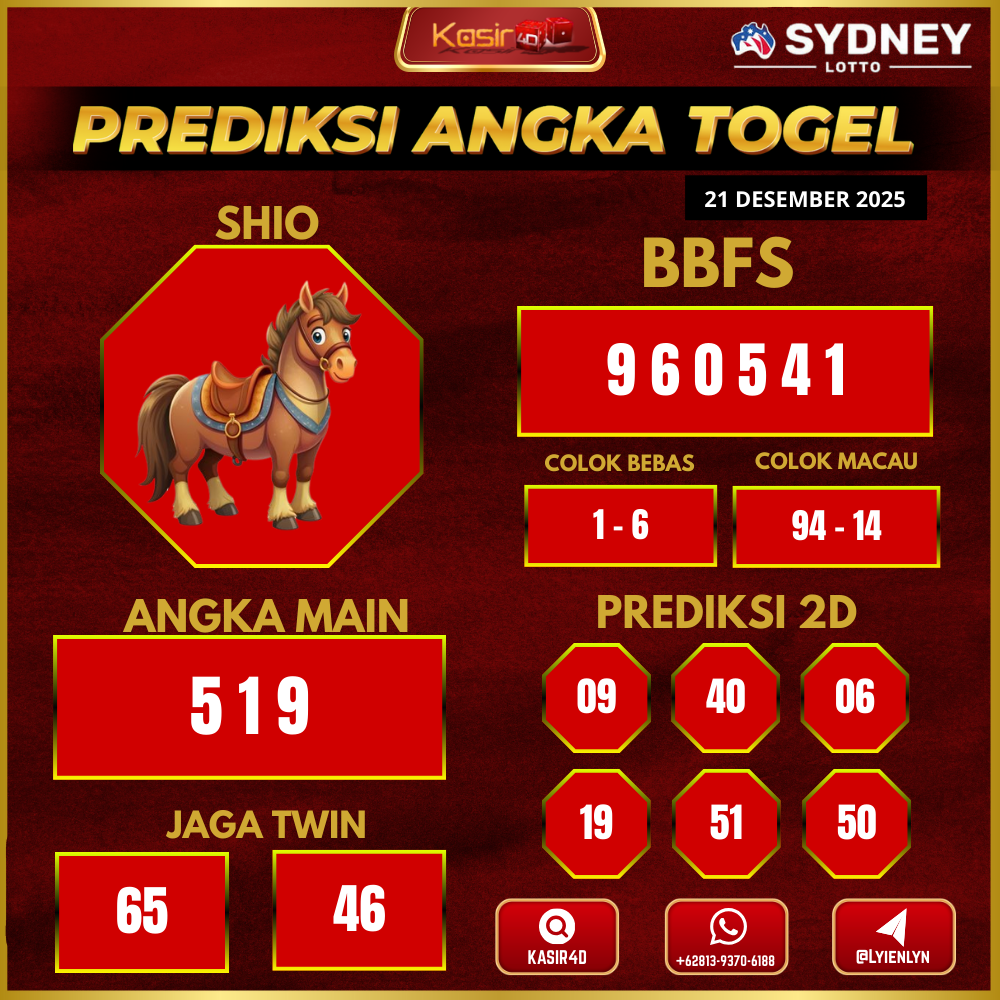 Prediksi Togel Sydney 21 Desember 2025Kasir4d hadir untuk memberikan panduan lengkap angka jitu hari ini. Pertama-tama, Anda akan menemukan data…