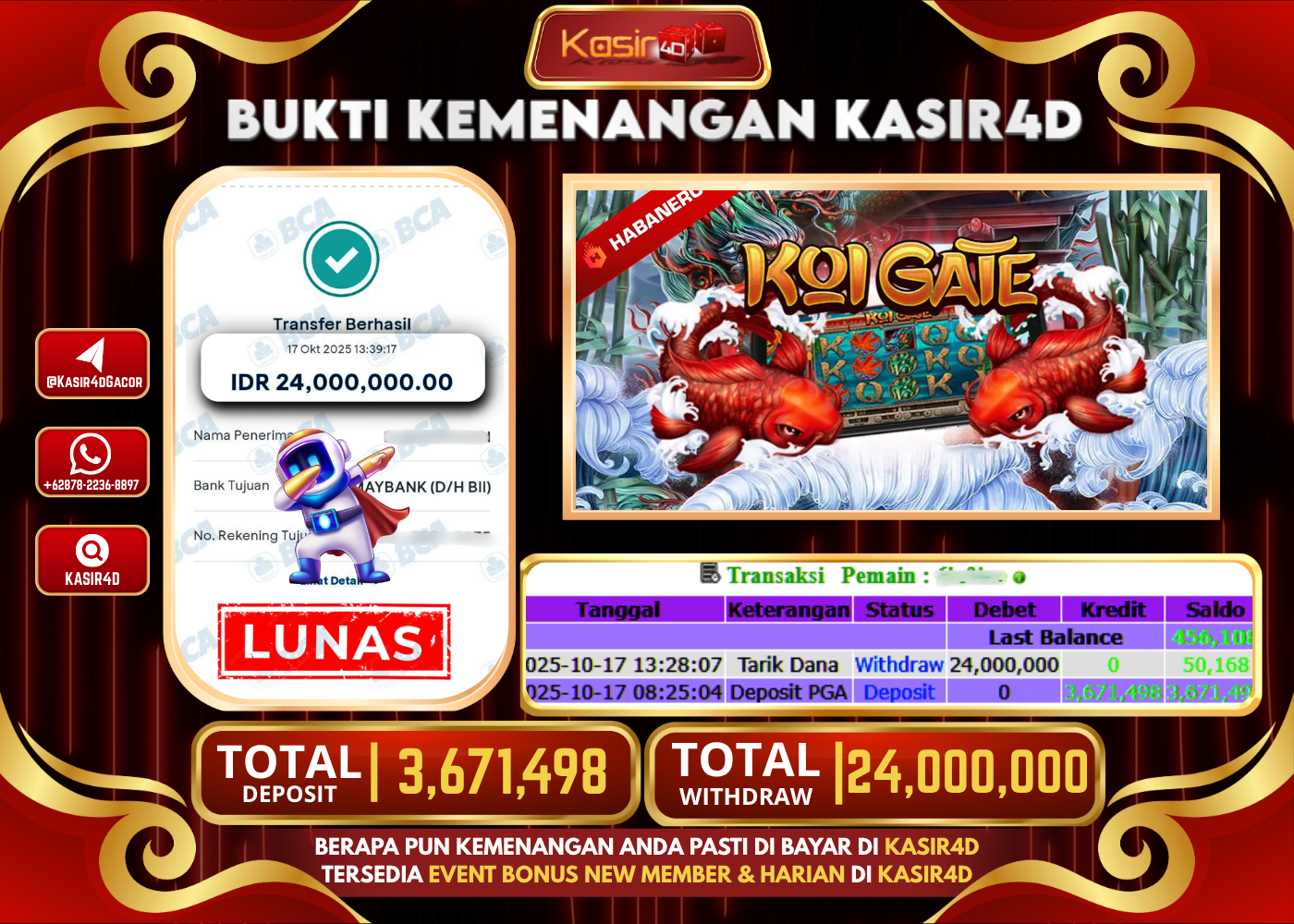 KASIR4D, Selamat Kepada User Id :Gi*****lang02 Atas Withdraw Hari ini Tgl 17 Oktober 2025Rp. 24,000,000 Di Game HABANERO KOI GATE INFORMASI…