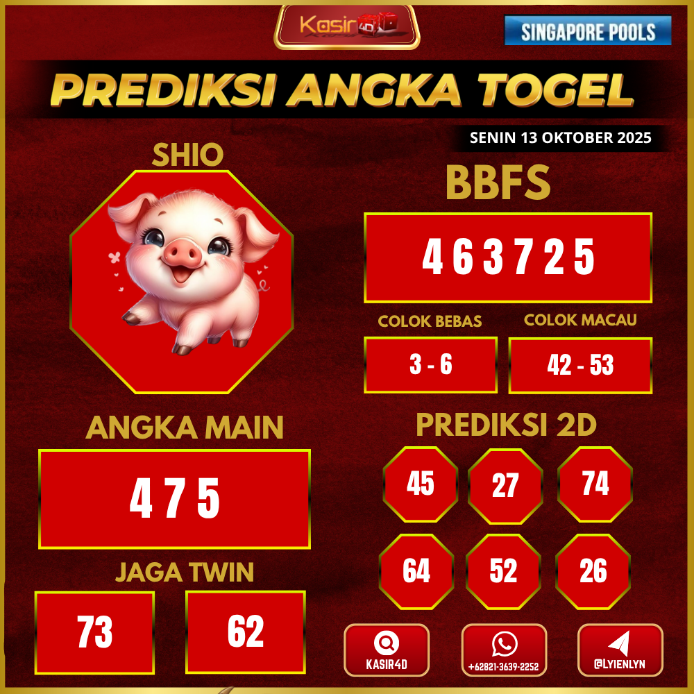 Prediksi Togel Singapore 13 Oktober 2025 Kasir4d hadir untuk memberikan panduan lengkap angka jitu hari ini. Pertama-tama, Anda akan menemukan…