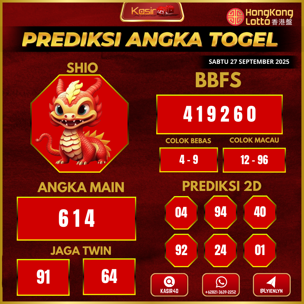 Prediksi Togel Hongkong 27 September 2025 Kasir4d hadir untuk memberikan panduan lengkap angka jitu hari ini. Pertama-tama, Anda akan menemukan…
