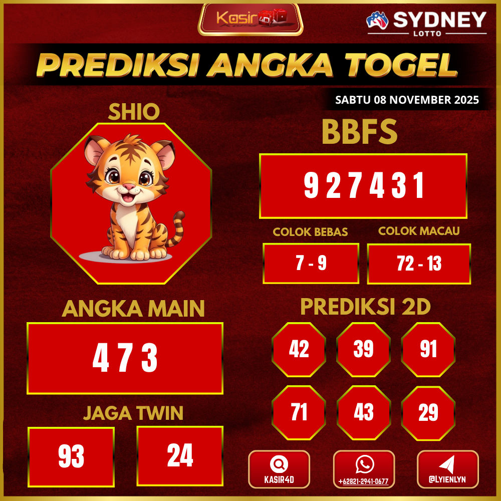 Prediksi Togel Sydney 08 November 2025Kasir4d hadir untuk memberikan panduan lengkap angka jitu hari ini. Pertama-tama, Anda akan menemukan data…