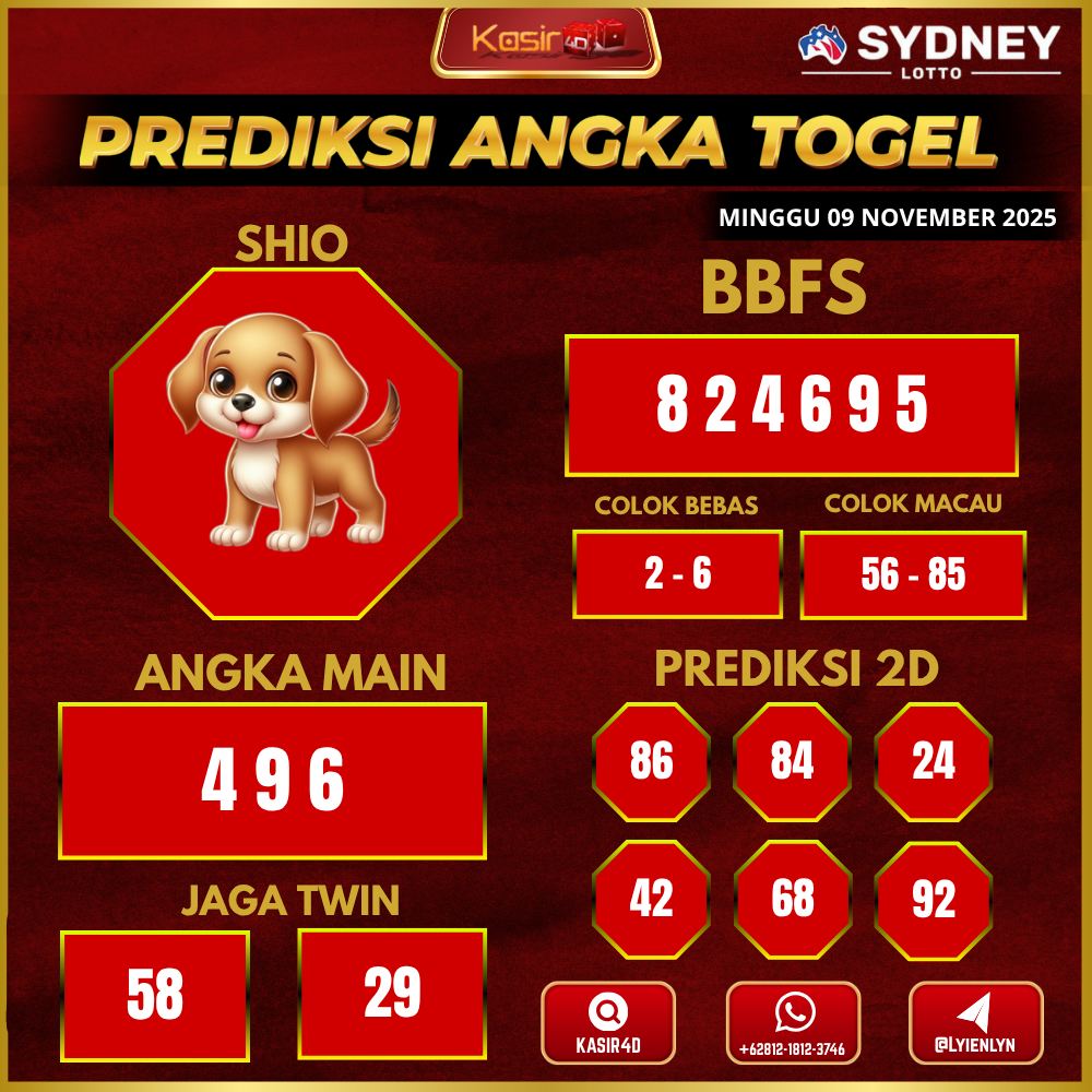 Prediksi Togel Sydney 09 November 2025Kasir4d hadir untuk memberikan panduan lengkap angka jitu hari ini. Pertama-tama, Anda akan menemukan data…