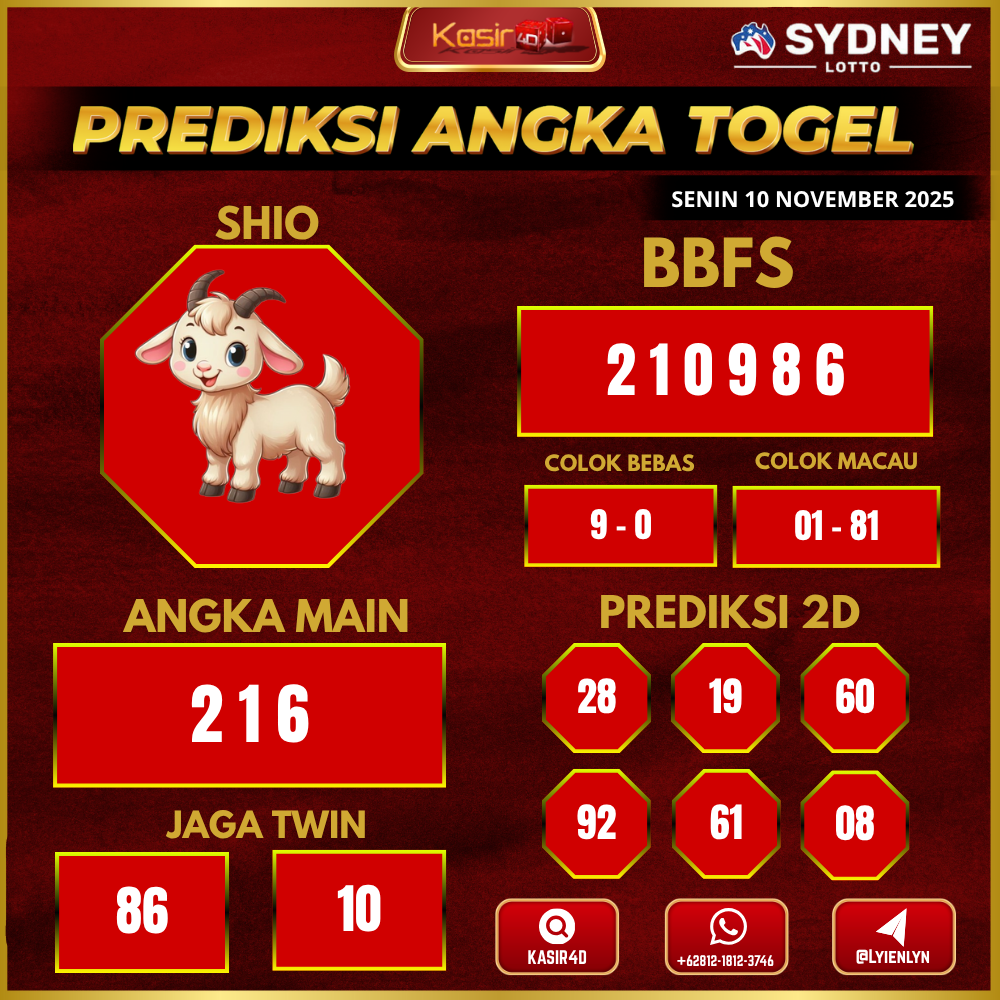 rediksi Togel Sydney 10 November 2025Kasir4d hadir untuk memberikan panduan lengkap angka jitu hari ini. Pertama-tama, Anda akan menemukan data…