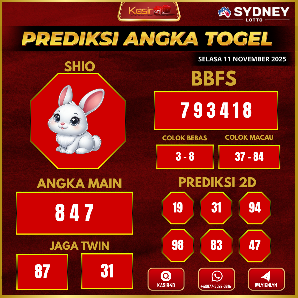 rediksi Togel Sydney 11 November 2025Kasir4d hadir untuk memberikan panduan lengkap angka jitu hari ini. Pertama-tama, Anda akan menemukan data…