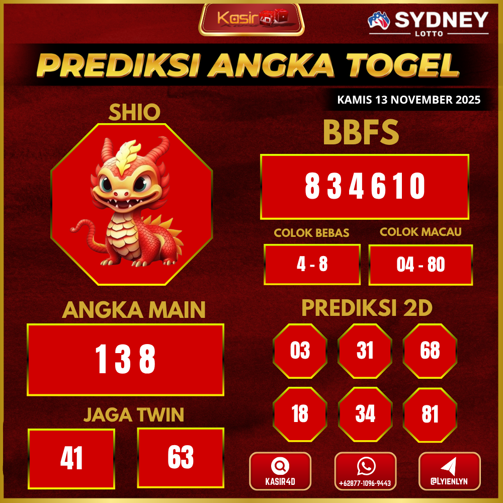 rediksi Togel Sydney 13 November 2025Kasir4d hadir untuk memberikan panduan lengkap angka jitu hari ini. Pertama-tama, Anda akan menemukan data…