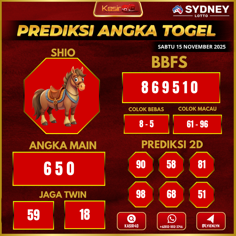 Prediksi Togel Sydney 15 November 2025Kasir4d hadir untuk memberikan panduan lengkap angka jitu hari ini. Pertama-tama, Anda akan menemukan data…