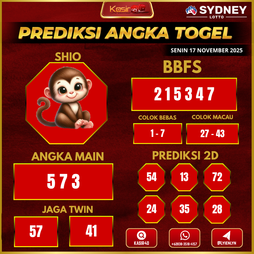 Prediksi Togel Sydney 17 November 2025Kasir4d hadir untuk memberikan panduan lengkap angka jitu hari ini. Pertama-tama, Anda akan menemukan data…