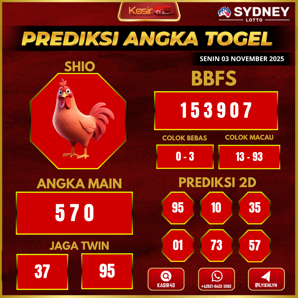 • Prediksi Togel Sydney 03 November 2025Kasir4d hadir untuk memberikan panduan lengkap angka jitu hari ini. Pertama-tama, Anda akan menemukan data…