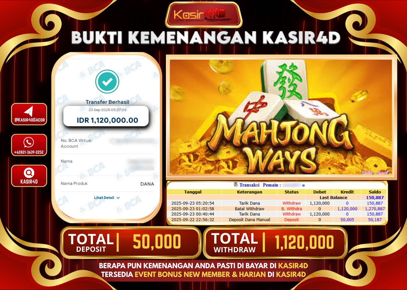 KASIR4D, Selamat Kepada User Id : R*****97 Atas Withdraw Hari ini Tgl 23 September 2025Rp. 1,120,000 Di Game PG SOFT MAHJONG…