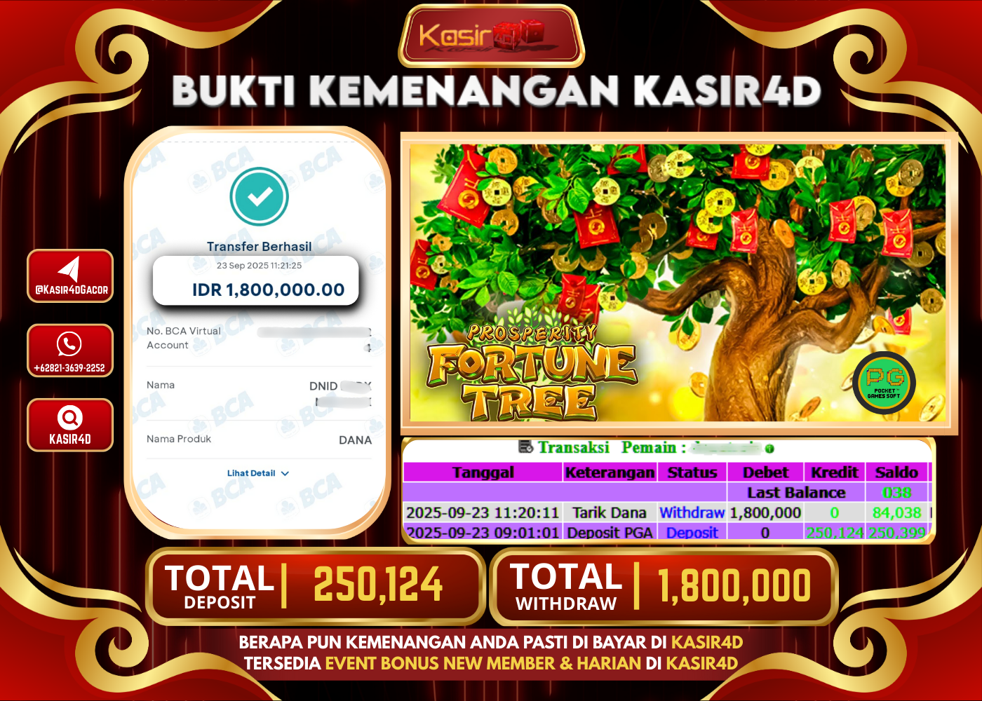 KASIR4D, Selamat Kepada User Id : Kp****k99 Atas Withdraw Hari ini Tgl 23 September 2025Rp. 1,800,000 Di Game PG SOFT PROSPERITY…
