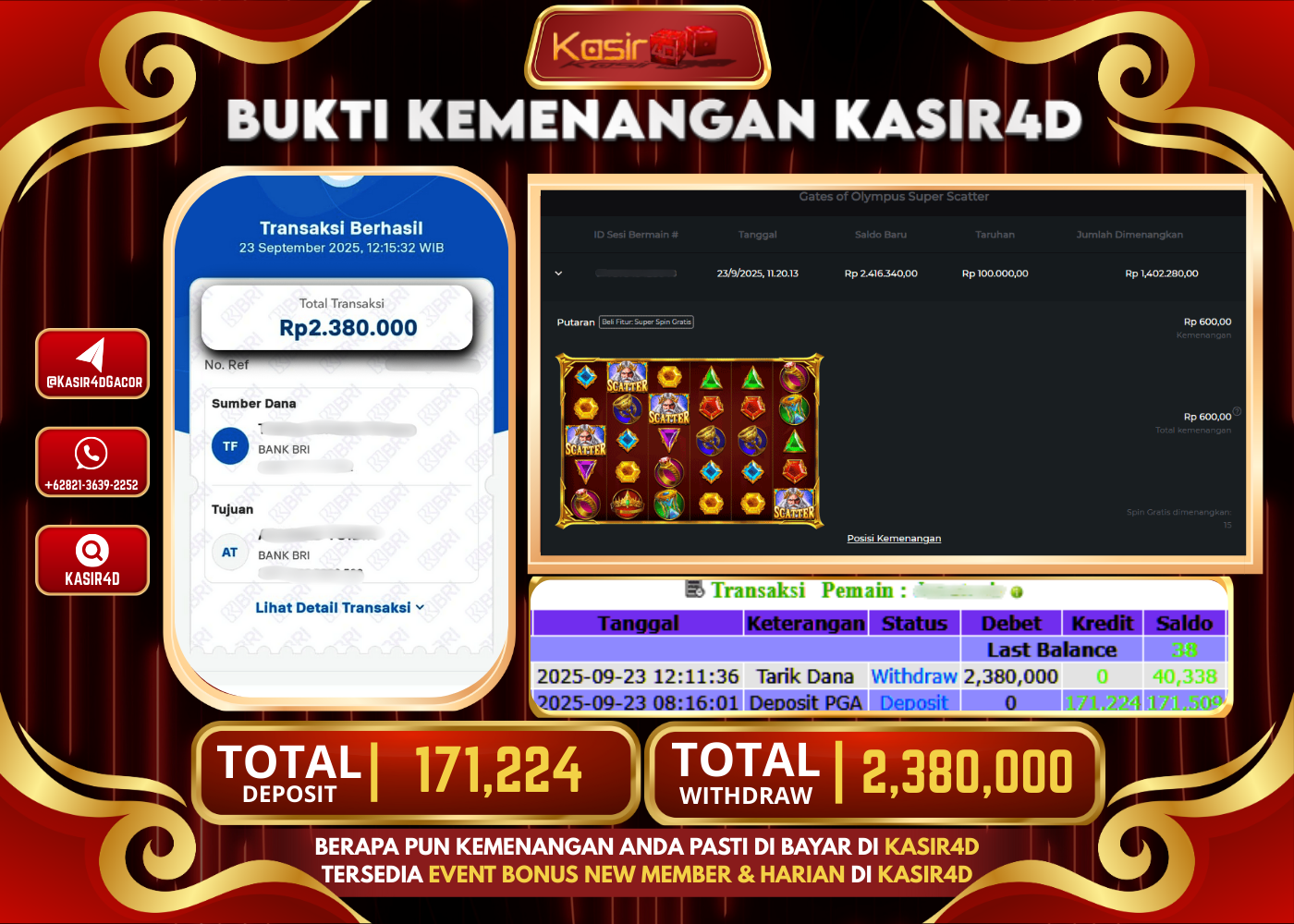 KASIR4D, Selamat Kepada User Id : Ko****an99 Atas Withdraw Hari ini Tgl 23 September 2025Rp. 2,380,000 Di Game PRAGMATIC PLAY GATES…