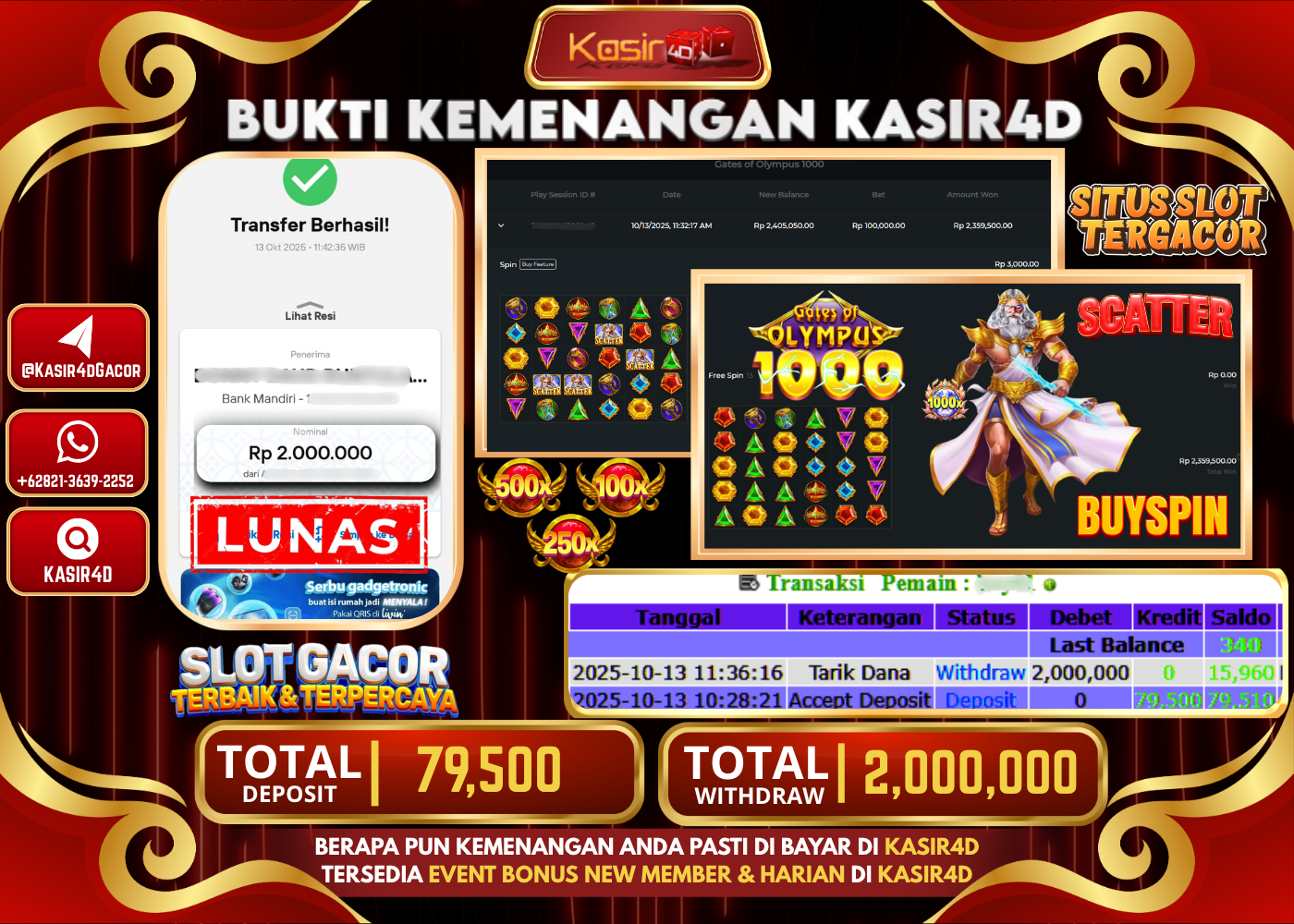 KASIR4D, Selamat Kepada User Id : 303*****9FR Atas Withdraw Hari ini Tgl 13 Oktober 2025Rp. 2,000,000 Di Game PRAGMATIC PLAY GATES…