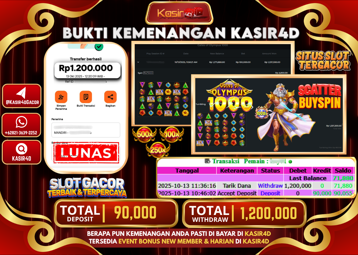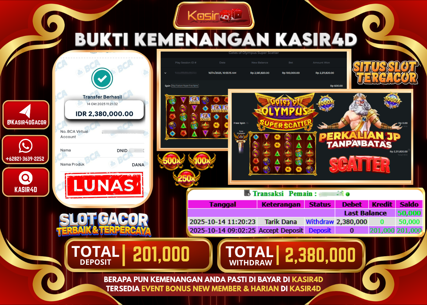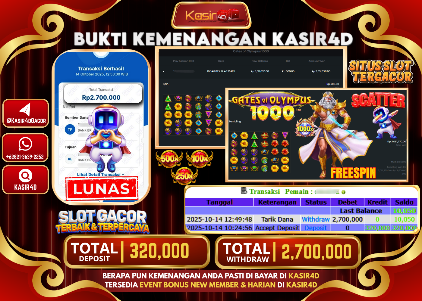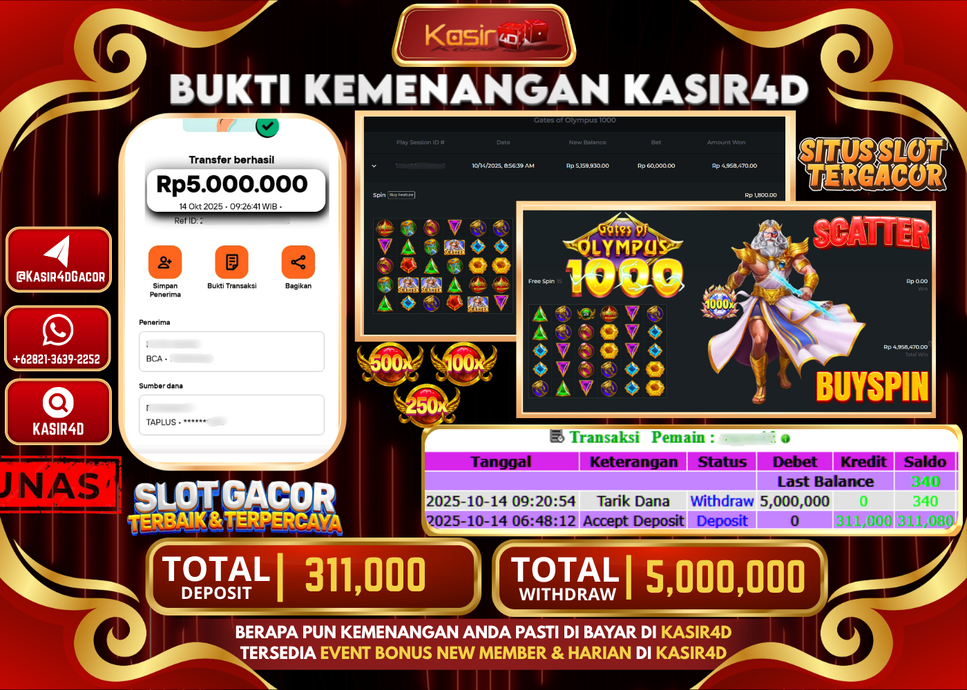 KASIR4D, Selamat Kepada User Id : Nin*****to55 Atas Withdraw Hari ini Tgl 14 Oktober 2025Rp. 60,000,000 Di PRAGMATIC PLAY GATES OF…