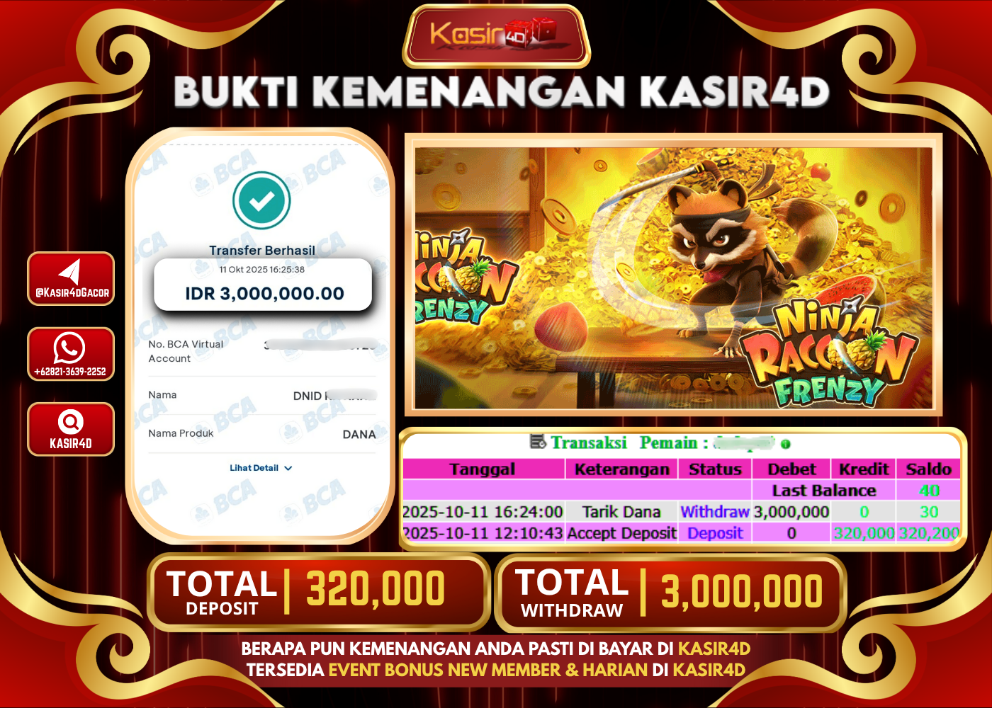 KASIR4D, Selamat Kepada User Id : Mis*****nom Atas Withdraw Hari ini Tgl 11 Oktober 2025Rp. 3,000,000 Di Game PG SOFT NINJA…