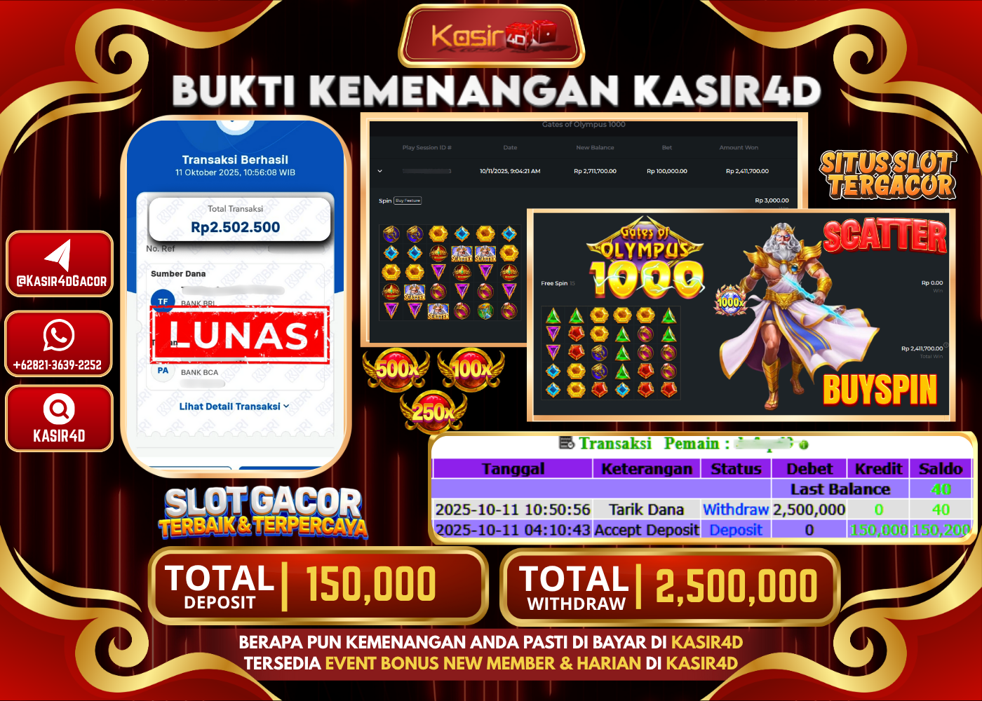 KASIR4D, Selamat Kepada User Id : Si*****lo99 Atas Withdraw Hari ini Tgl 11 Oktober 2025Rp. 2,500,000 Di Game PRAGMATIC PLAY GATES…