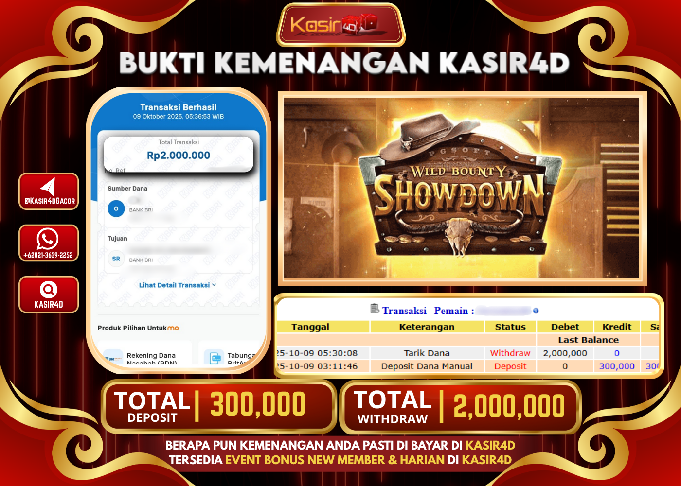 KASIR4D, Selamat Kepada User Id : g*******93 Atas Withdraw Hari ini Tgl 09 Oktober 2025Rp. 2,000,000 Di Game PG SOFT WILD…