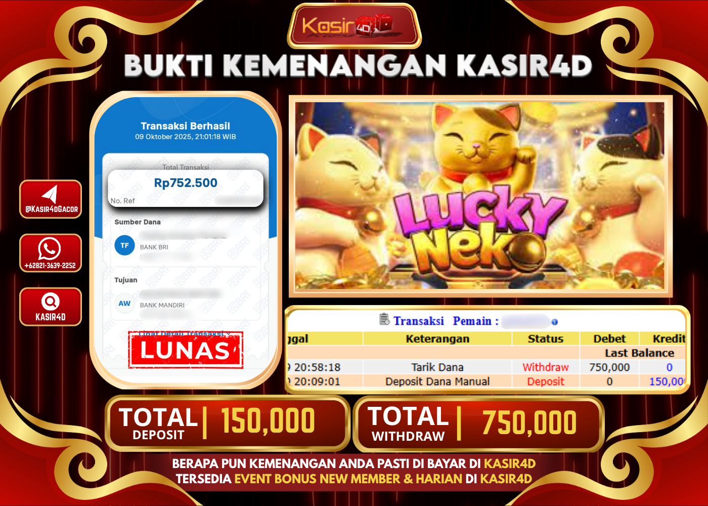 KASIR4D, Selamat Kepada User Id : G******3 Atas Withdraw Hari ini Tgl 09 Oktober 2025Rp. 750,000 Di Game PG SOFT LUCKY…