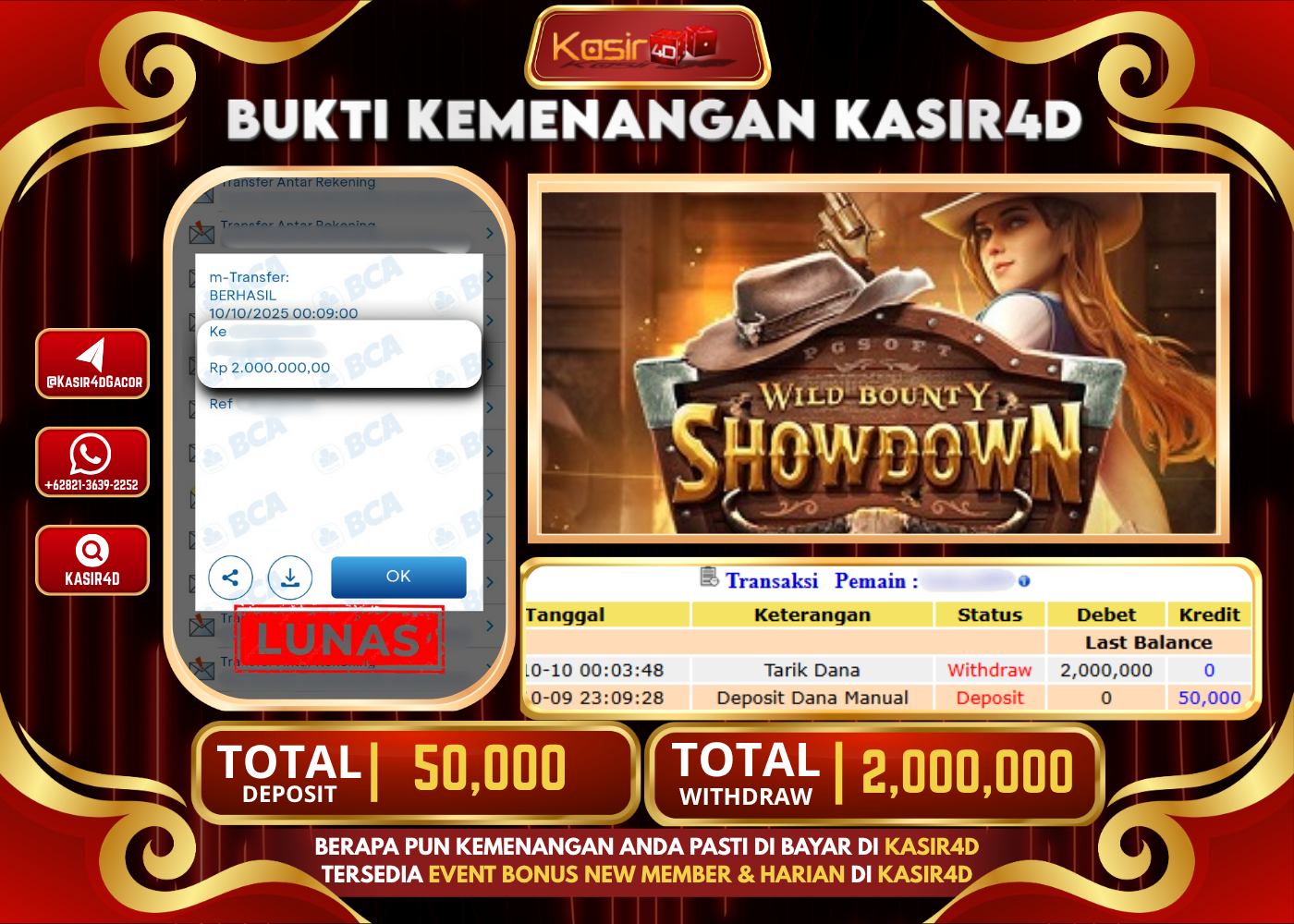 KASIR4D, Selamat Kepada User Id : N*****33 Atas Withdraw Hari ini Tgl 10 Oktober 2025Rp. 2,000,000 Di Game PG SOFT WILD…
