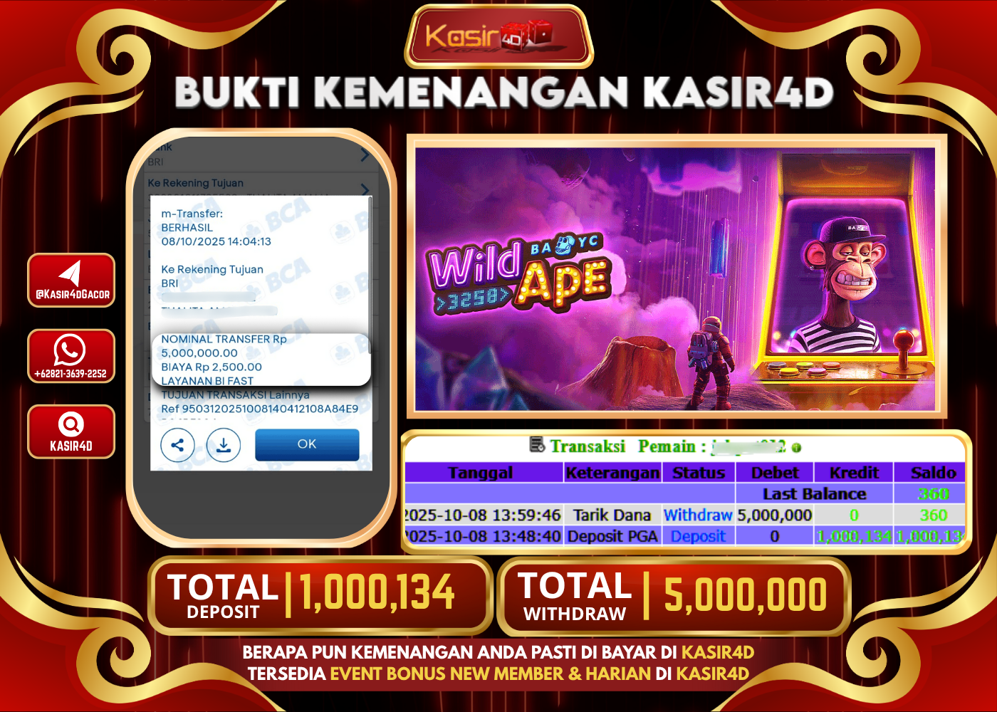 KASIR4D, Selamat Kepada User Id : Tiko*****mo99 Atas Withdraw Hari ini Tgl 08 Oktober 2025Rp. 5,000,000 Di Game PG SOFT WILD…