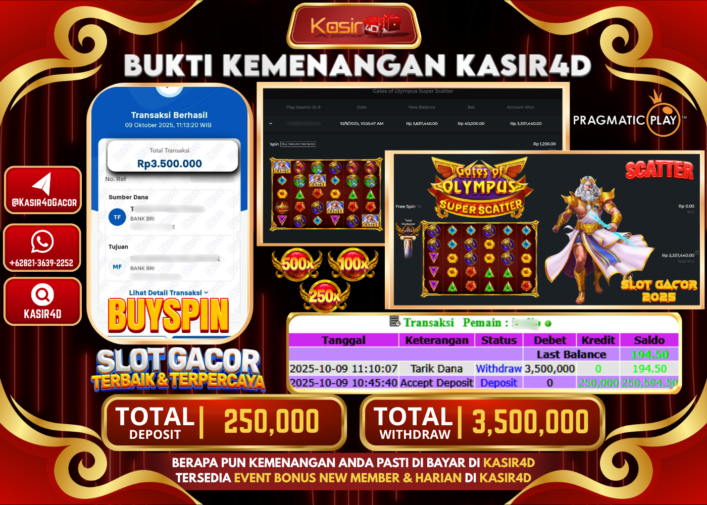 KASIR4D, Selamat Kepada User Id : To*****n222 Atas Withdraw Hari ini Tgl 09 Oktober 2025Rp. 3,500,000 Di Game PRAGMATIC PLAY GATES…