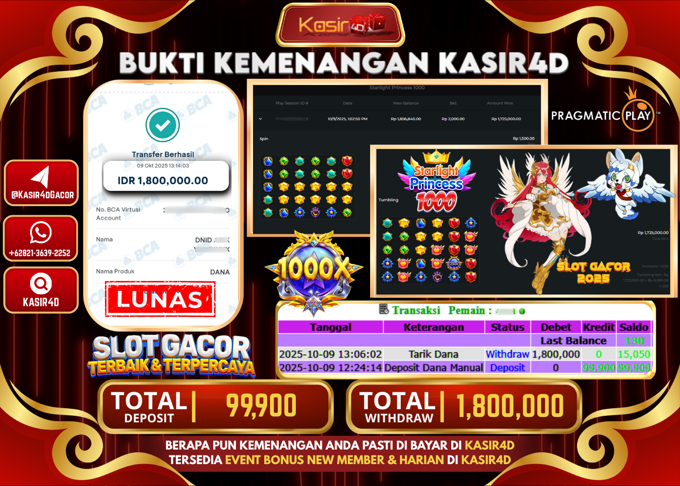 KASIR4D, Selamat Kepada User Id : Li*****n99 Atas Withdraw Hari ini Tgl 09 Oktober 2025Rp. 1,800,000 Di Game PRAGMATIC PLAY STARLIGHT…