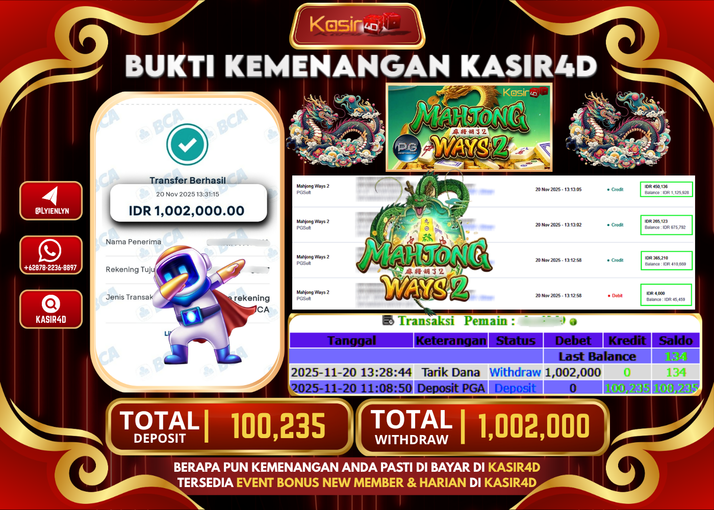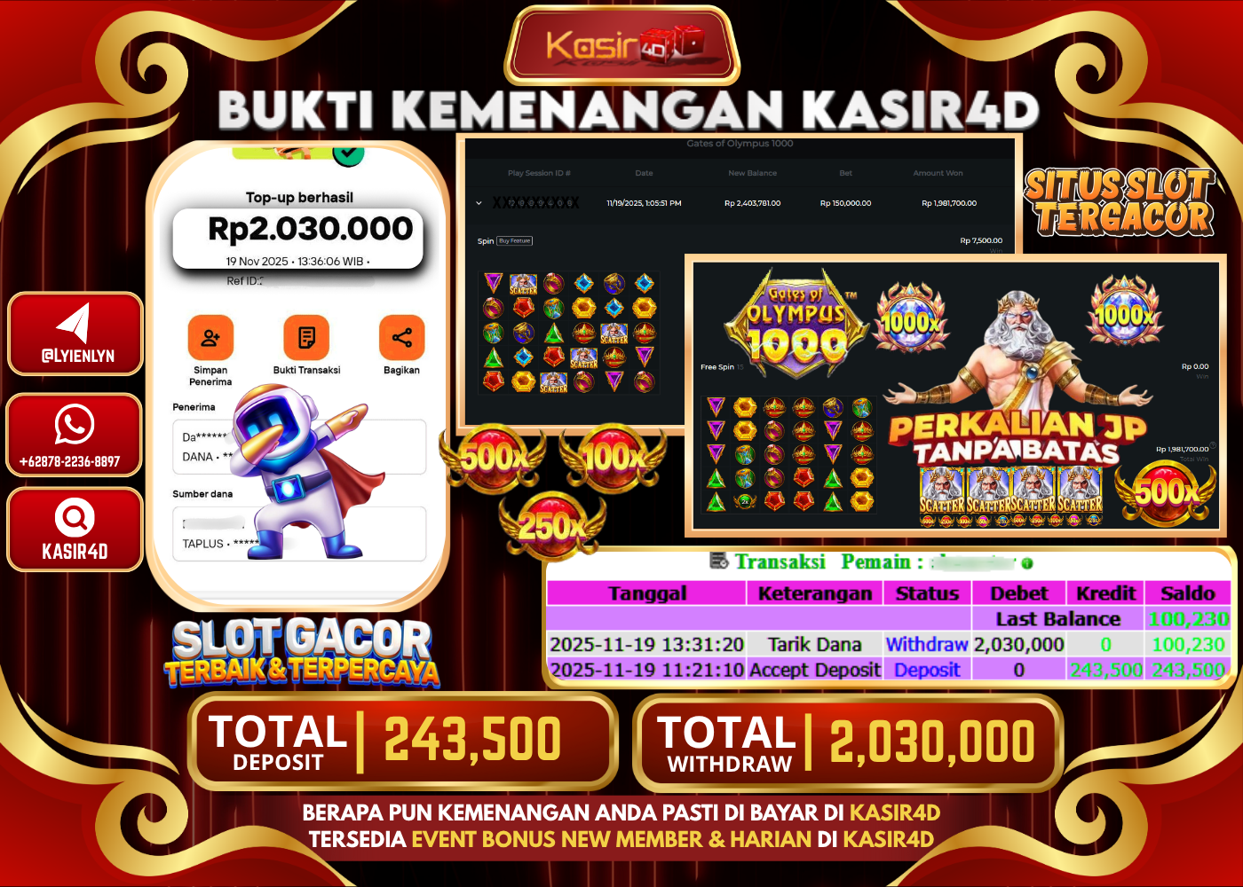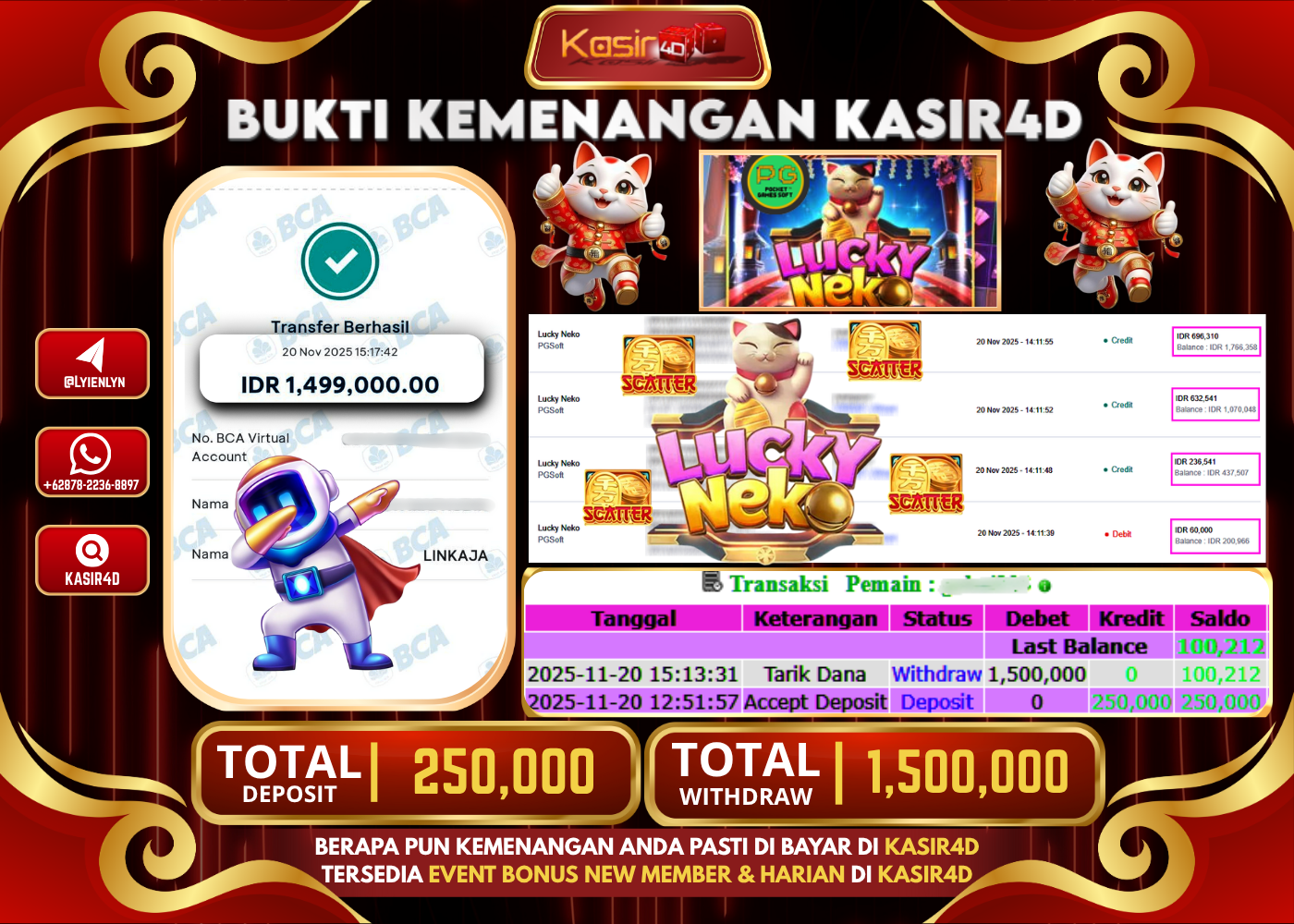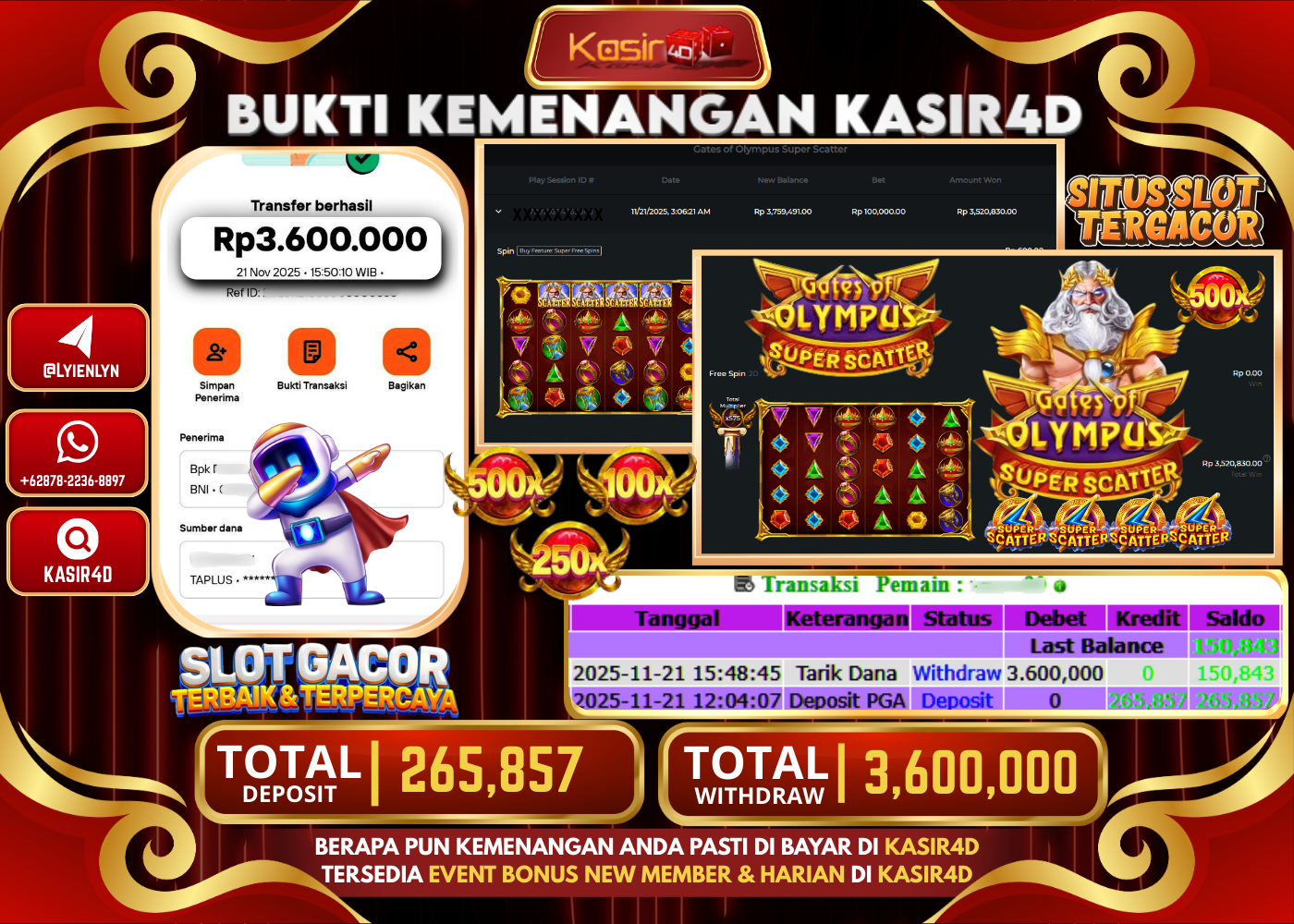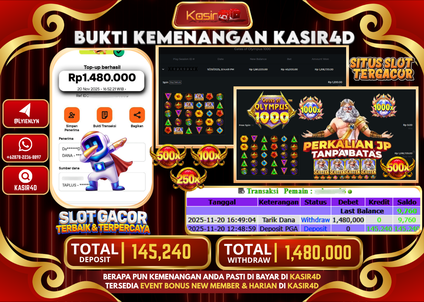 KASIR4D, Selamat Kepada User Id : RA ***** MAT36 Atas Withdraw Hari ini Tgl 20 November2025Rp. 1.480.000 Di Game PRAGMATIC PLAY…