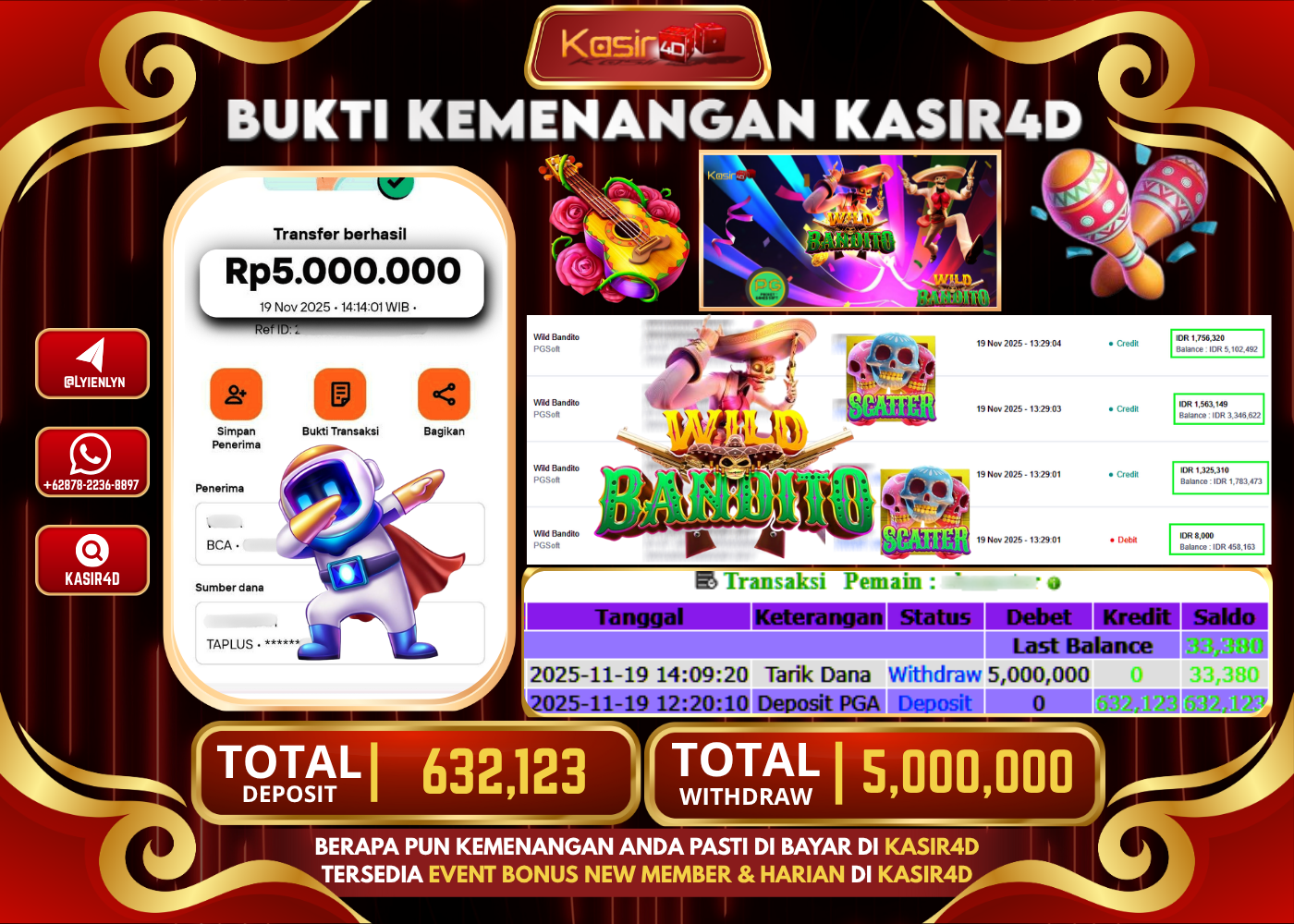 KASIR4D, Selamat Kepada User Id : SI ***** KA80 Atas Withdraw Hari ini Tgl 19 November2025Rp. 5.000.000 Di Game PG SOFT…