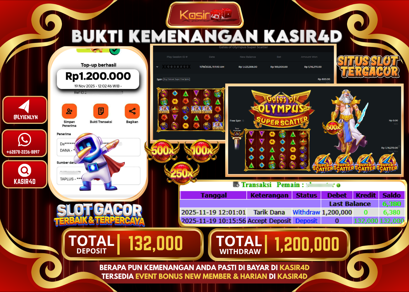 KASIR4D, Selamat Kepada User Id : RU ***** LAN99 Atas Withdraw Hari ini Tgl 19 November2025Rp. 1.200.000 Di Game PRAGMATIC PLAY…