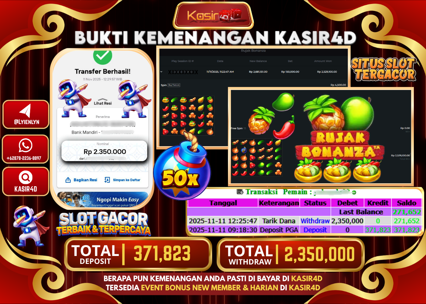 KASIR4D, Selamat Kepada User Id : GO*****BAY123 Atas Withdraw Hari ini Tgl 11 November 2025Rp. 2.350.000 Di Game PRAGMATIC PLAY RUJAK…