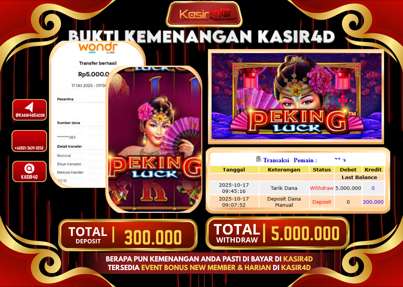 KASIR4D,Selamat Kepada User Id : P****74 Atas Withdraw Hari iniTgl 17 Oktober 2025 Rp.5.000.000 Di Game PRAGMETICK PEKING LUCK INFORMASI LENGKAP TERKAIT SITUS…