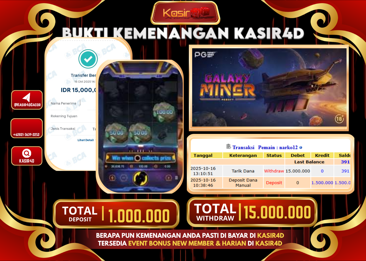 KASIR4D,Selamat Kepada User Id : KA***N45 Atas Withdraw Hari iniTgl 16 Oktober 2025 Rp.15.000.000 Di Game Pg GLAXY WINER INFORMASI LENGKAP TERKAIT SITUS…
