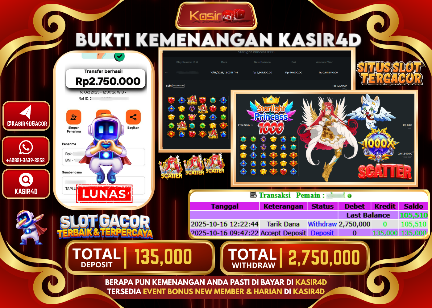 KASIR4D, Selamat Kepada User Id : Tia*****99 Atas Withdraw Hari ini Tgl 16 Oktober 2025Rp. 2,750,000 Di Game PRAGMATIC PLAY STARLIGHT…
