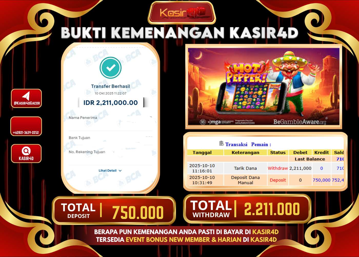 KASIR4D, Selamat Kepada User Id : CU***10 Atas Withdraw Hari ini Tgl 10 Oktober 2025Rp. 2.211.000 Di Game PRAGMATICK HOT PEPPER INFORMASI LENGKAP TERKAIT SITUS KASIR4D…