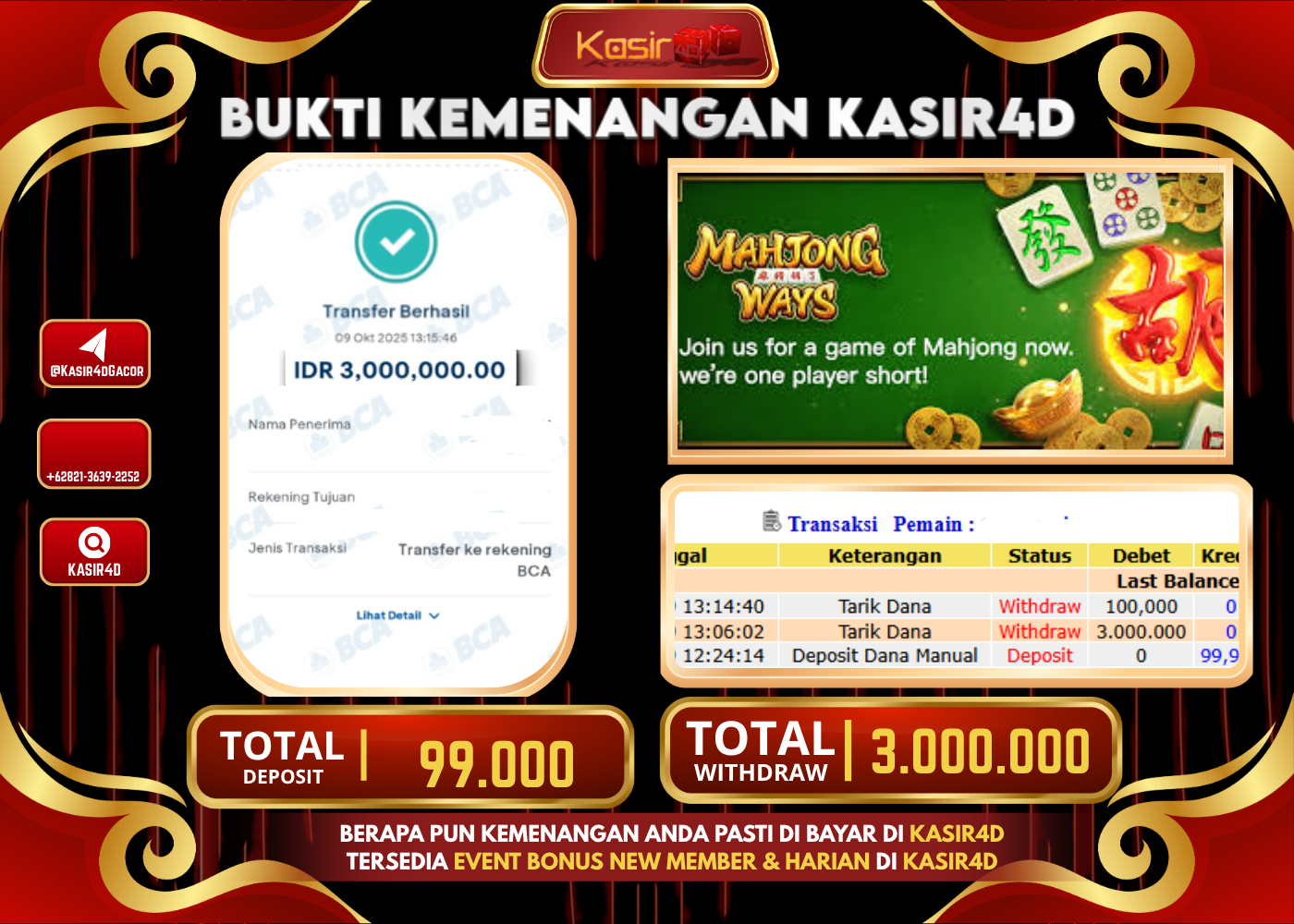 KASIR4D,Selamat Kepada User Id : ta*****rWithdraw Hari ini Tgl 09 Oktober 2025 Rp. 3.000,000 Di Game PG SOFTMAHJONG WAYS INFORMASI LENGKAP TERKAIT SITUS KASIR4D GACOR GAMPANG…