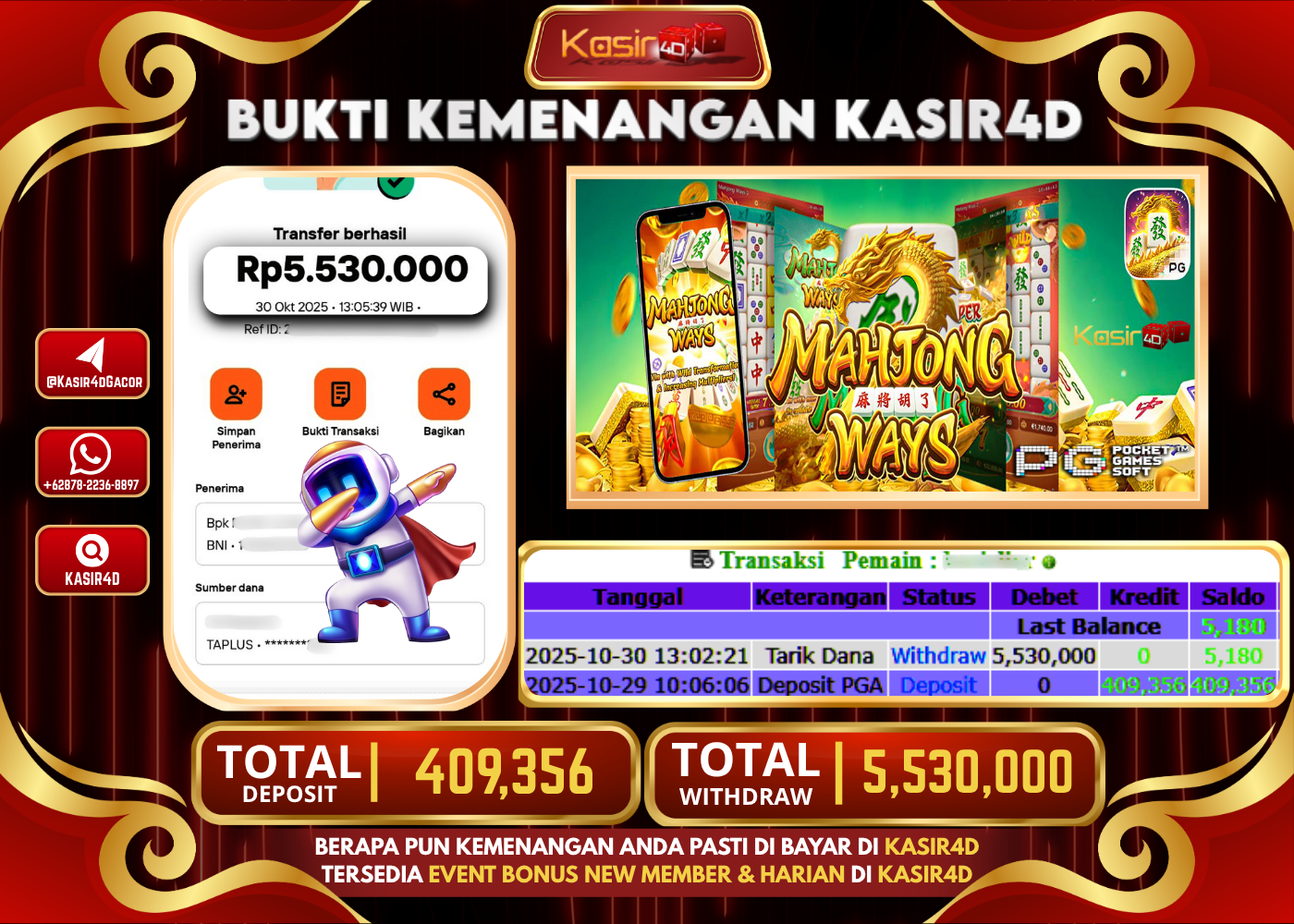 KASIR4D, Selamat kepada User id : N*****G14 Atas Withdraw Rp. 2,300,000 Di Game Pg Soft Mahjong Ways 2 INFORMASI LENGKAP TERKAIT…