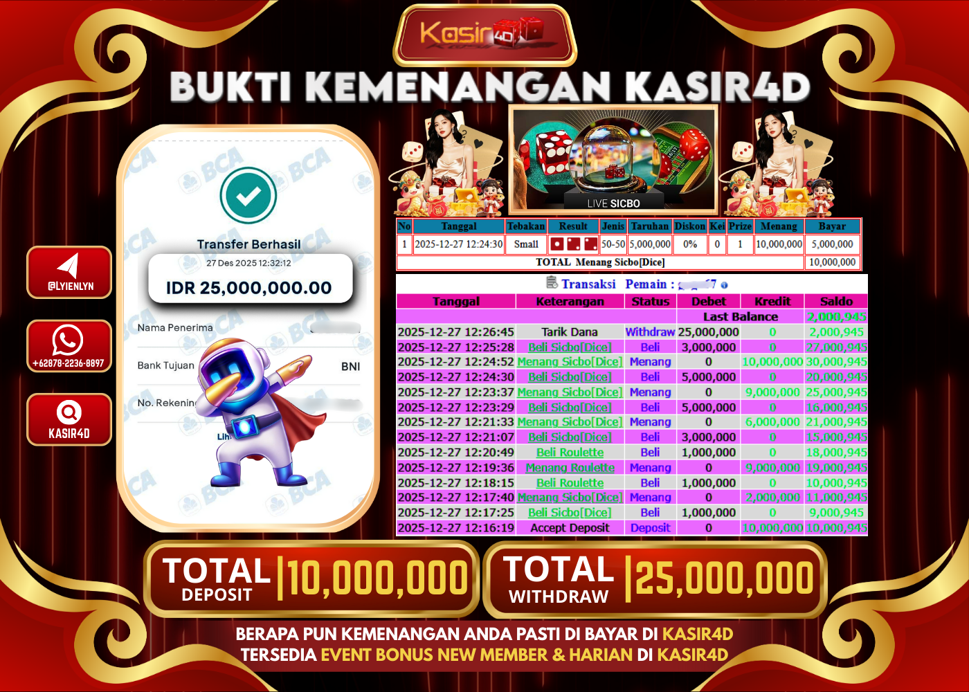 KASIR4D, Selamat Kepada User Id : GO ***** GO67 Atas Withdraw Hari ini Tgl 27 Desember 2025Rp. 25.000.000 Di Game LIVE…